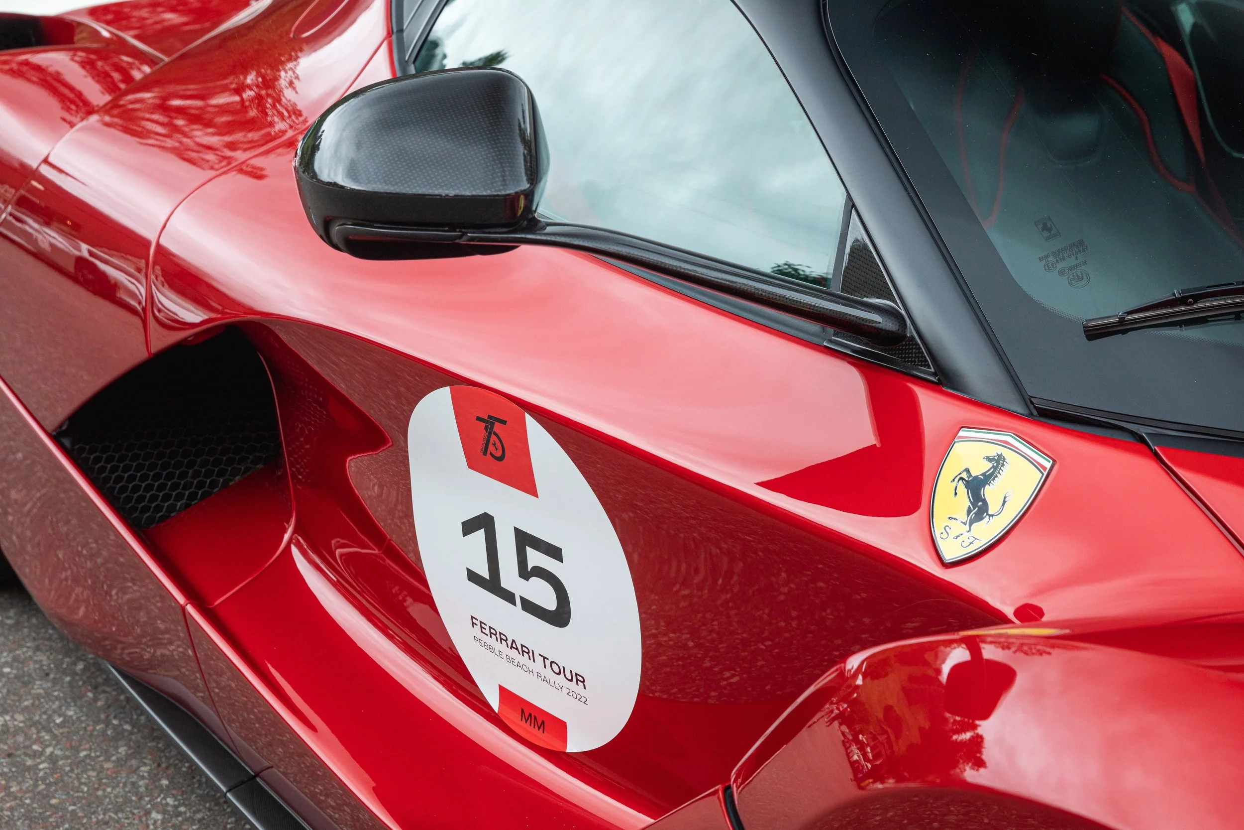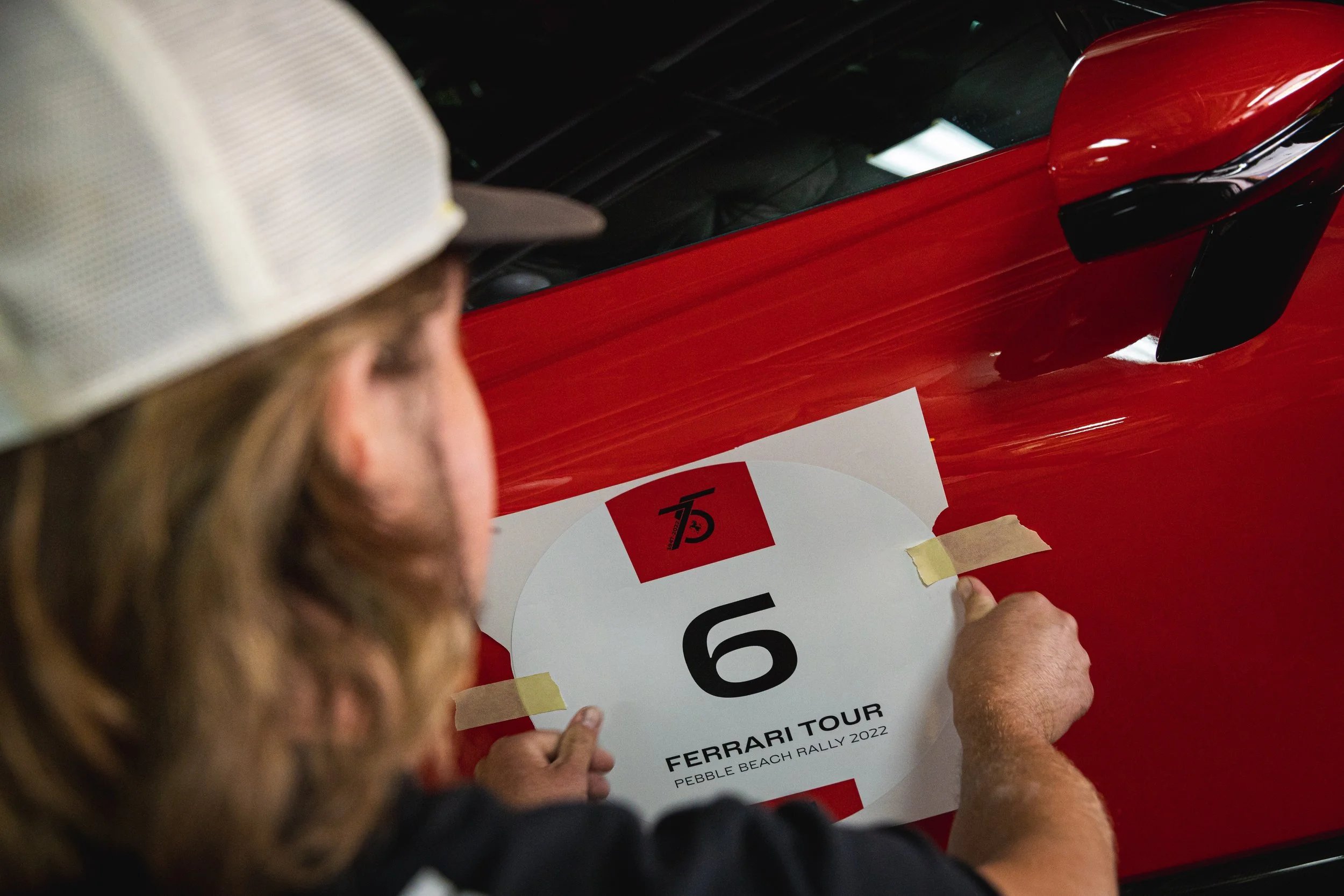For the 2022 Ferrari Pebble Beach Drive Rally, I created personalized car decals for some of Ferrari’s high-end customers to sport on their prized cars. Each of the 40 pairs of car decals included a number, the driver’s initials and an anniversary logo. I took inspiration from Ferrari’s 1970s race cars.